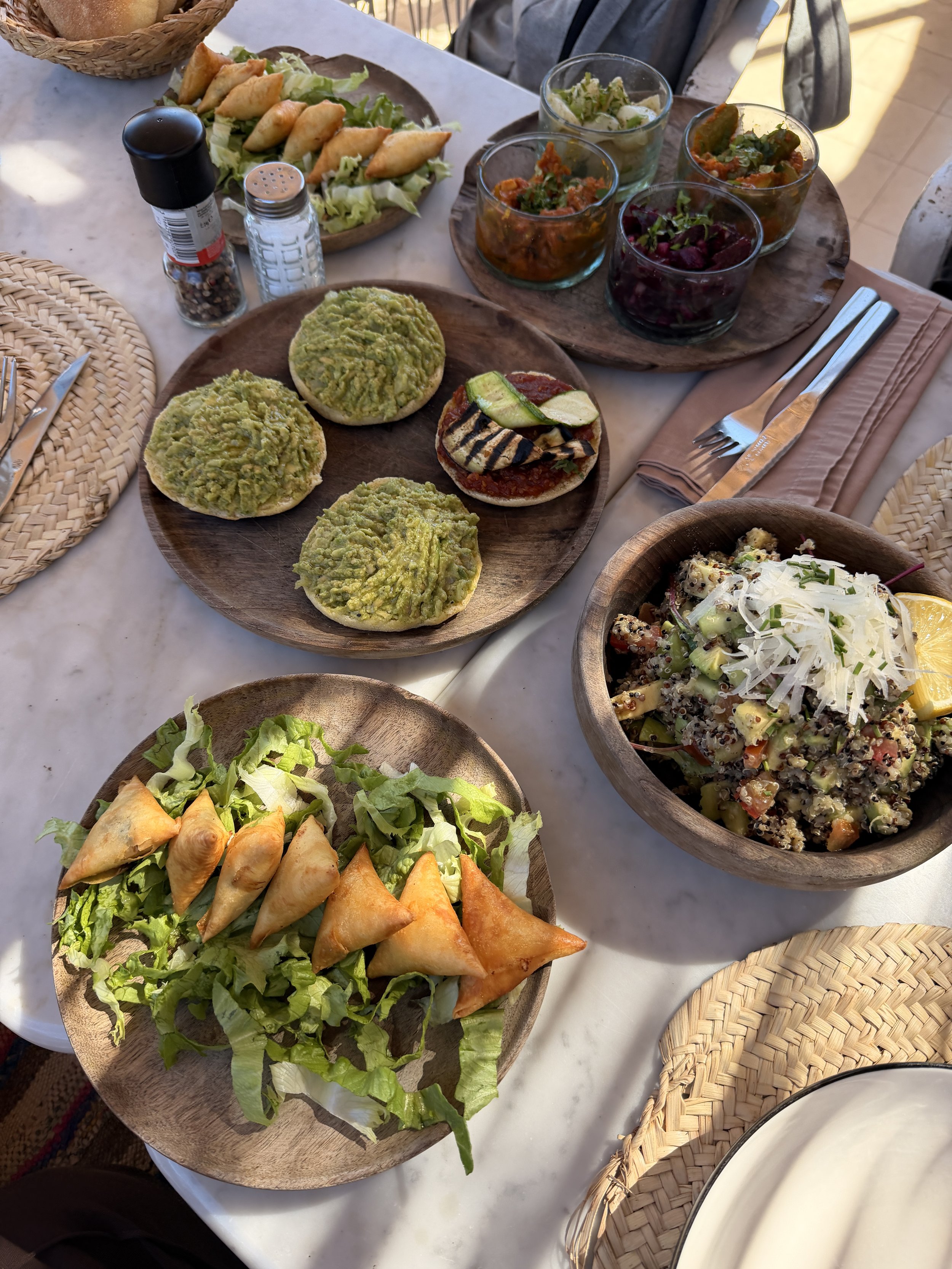 Marrakeshissa on paljon Instagram-trendikkäitä ravintoloita, joista mekin kävimme muutamassa, mutta petyimme makuelämyksiin, jota paikan upea visuaalisuus ei aina riittänyt paikkaamaan. Etenkin trendikkäämpiin paikkoihin kannattaa varata pöytä etukäteen. Pari niistä trendikkäistä ravintoloista, jotka oli makujen puolesta hieman pettymyksiä olivat L’mida ja Les Jardins.