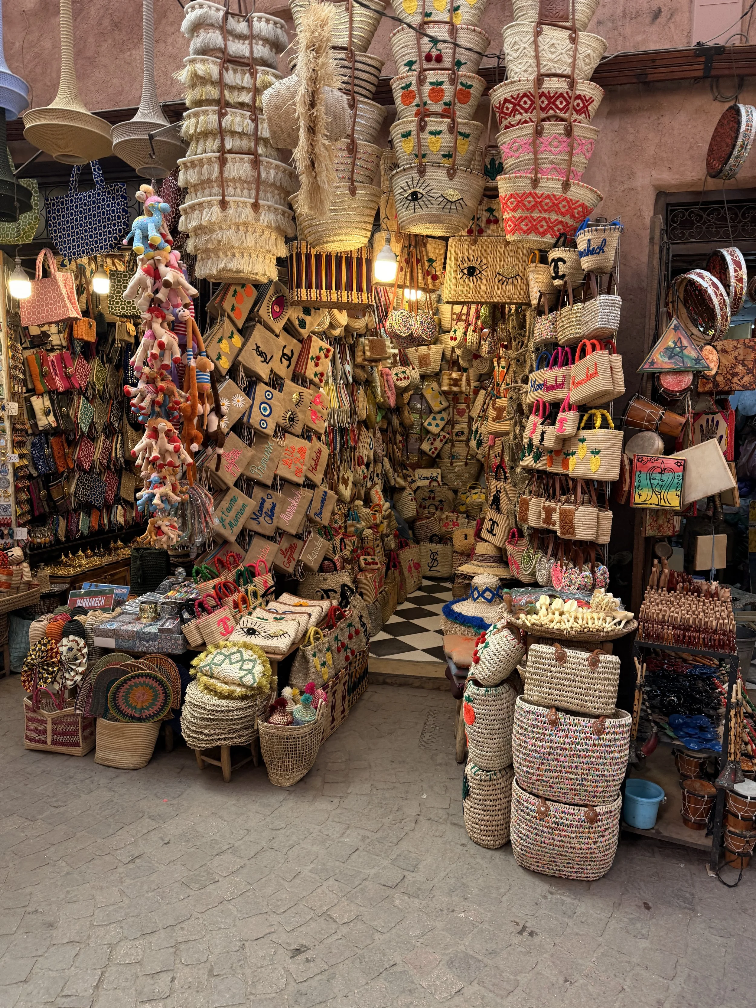 Itse ostin Medinan soukeista kahvikuppeja, laadukkaita nahkakenkiä ja -laukkuja. Käsityötä arvostetaan Marokossa ja kunhan löydät tiesi paikkoihin missä tuotteet on oikeasti käsintehtyjä on ne yleensä todella laadukkaita. Medinassa on tiettyjä alueita, joissa huomaat enemmän käsityöläisiä – monelta voi jopa tilata käsintehdyt juuri itselle suunnitellut kengät ja laukut kunhan on pari päivää aikaa. Jos merkitset Google Mapsiin ainakin Souk Haddadine tai Souk El Attarine, niistä ja niiden lähialueilta pitäisi löytyä hyvin käsityöläisiä ja laadukkaita ostoksia.