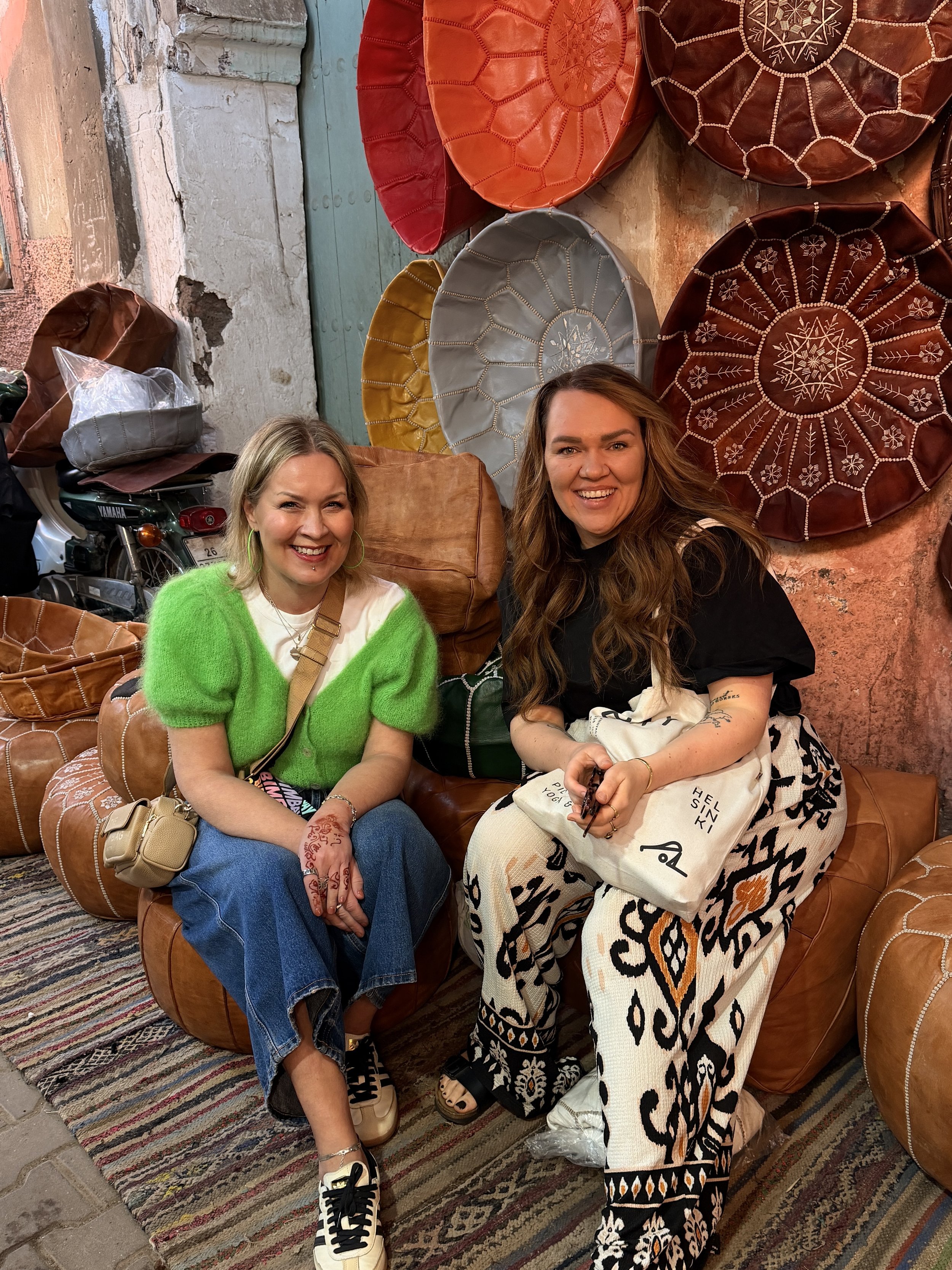 En ole enää nykyään kova shoppailija reissuilla kuin joskus nuorempana, mutta Marrakeshin soukeissa tilanne lähti “hieman” käsistä. Harva asia tuo yhtä voimakasta dopamiiniryöppyä kuin eksyminen Medinan kujien loputtomiin putiikkeihin. Medina on Marrakeshin vanhakaupunki, joka on perinteisesti muurien ympäröimä. Medinan kujat ovat kapeita ja kulman takaa voi aina tulla moottoripyörä tai aasi, joten siellä saa olla myös varovainen ettei jää jalkoihin.
