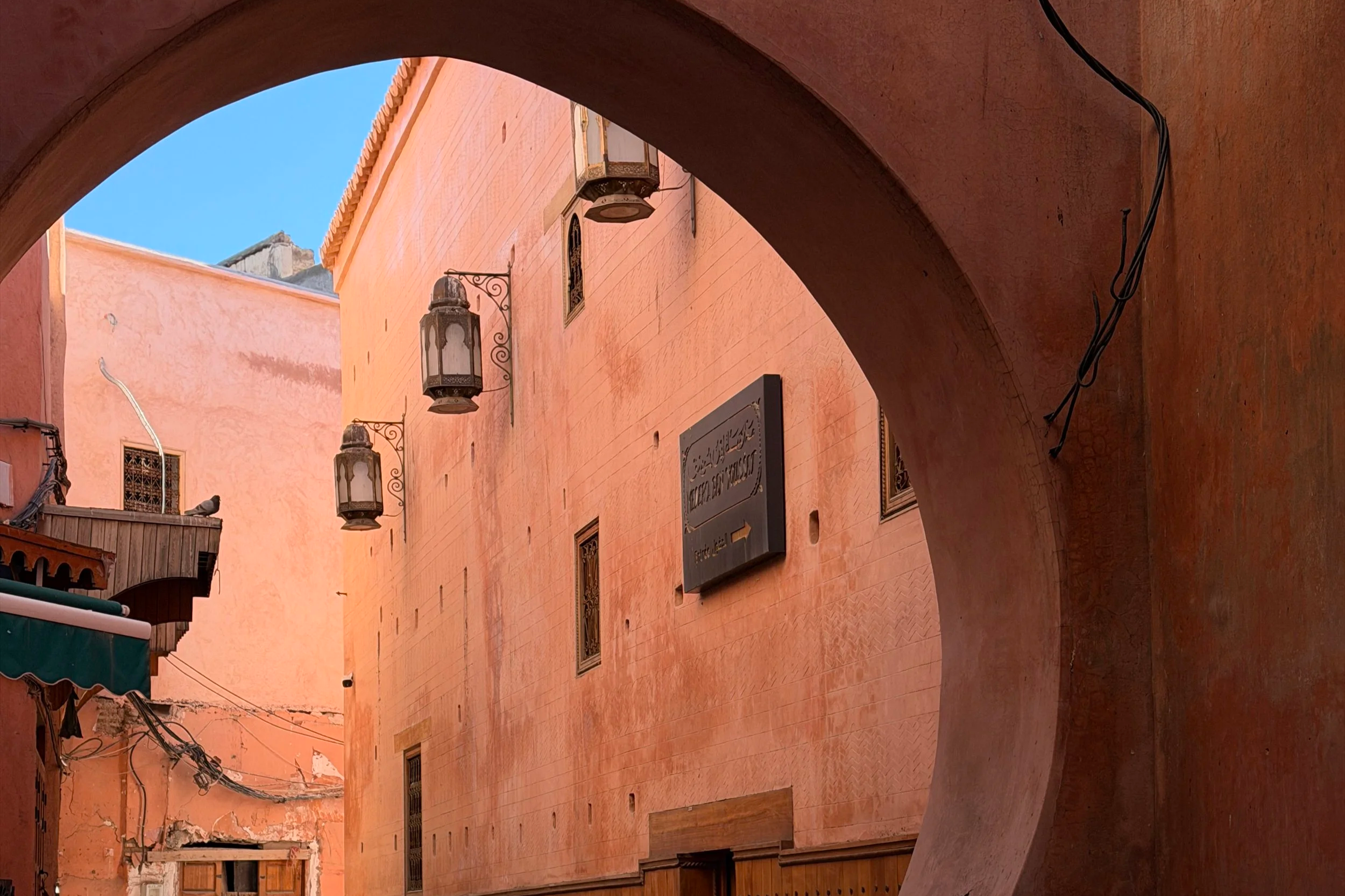 Madrasa Ben Youssef sijaitsee Medinan ytimessä ja siellä kannattaa vierailla aamulla jos mahdollista, sillä nähtävyys on yksi kaupungin suosituimpia ja päivällä usein todella ruuhkainen. Lippuja voi joutua jonottamaan jonkin aikaa etenkin päivällä.